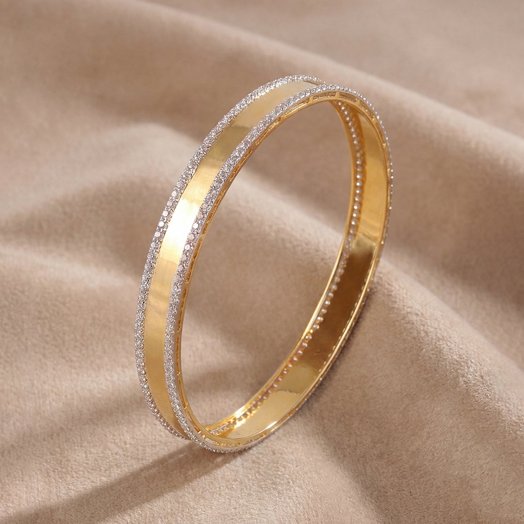 Sleek and elegant gold bracelet with sparkling stone-lined edges. Its minimal yet luxurious design makes it perfect for both everyday wear and special occasions.